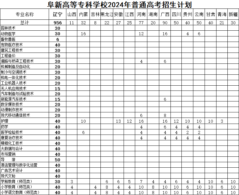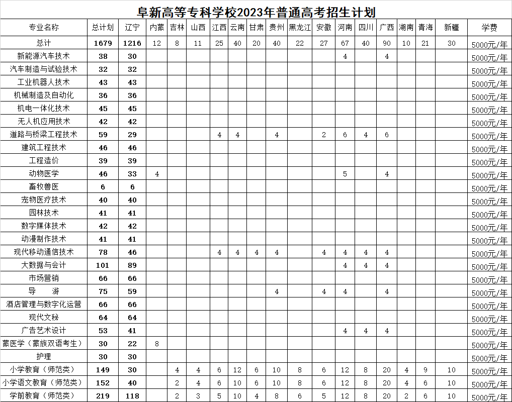 阜新高等??茖W校2025年單招專業(yè)及招生計劃一覽表
