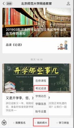 第一步:關(guān)注“北京師范大學(xué)網(wǎng)絡(luò)教育”微信公眾號(hào)