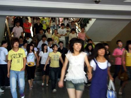 6月24日上午9:50,警報響起,全校各教學(xué)、辦公場所的安全通道及時打開。師生們以警笛為令,按照指定路線迅速撤離,并在休閑廣場集合。整個演練過程歷時不到4分鐘。學(xué)校領(lǐng)導(dǎo)親臨現(xiàn)場指揮并對演練情況進行了總結(jié)。25日上午,在沒有提前通知、安排的情況下,學(xué)校又進行了一次突擊演練,逃生用時較前日縮短。