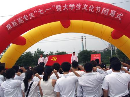 在中國共產(chǎn)黨這個光榮的組織里,80多年來涌現(xiàn)出了無數(shù)優(yōu)秀共產(chǎn)黨員,他們胸懷祖國,愛崗敬業(yè),為國家的繁榮、民族的富強努力奮斗、無私奉獻。今天,我校又有80名優(yōu)秀青年加入到這個光榮而偉大的隊伍中。他們在濛濛細雨中,面對鮮紅的黨旗莊嚴宣誓。從此,他們將時刻牢記入黨誓言,在平凡的崗位上履行對黨對人民無限忠誠的莊重承諾。
