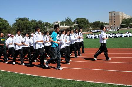 校黨委書記張明文在開營式上講話。他首先代表學校向2009級新同學表示熱烈歡迎。同時,向擔任本次新生軍訓工作的解放軍65667部隊的首長、教官們表示衷心的感謝。張書記在講話中對全體參訓新生提出了幾點希望和要求。他希望大家學習解放軍的好思想,好作風,嚴守紀律,吃苦耐勞。通過軍訓,激發(fā)愛國熱情,增強責任感和使命感,樹立為國家富強而努力學習的遠大志向。