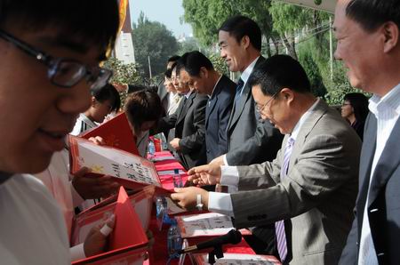 趙瑞江校長在開學(xué)典禮上做了簡短精練而振奮人心的講話。他代表全校師生對09級(jí)新生表示熱烈歡迎。趙校長指出,在全校師生的共同努力下,阜新高專在不斷開拓創(chuàng)新中成長,辦學(xué)水平不斷提高,09級(jí)新生的到來為阜新高專注入了新的生機(jī)。他希望全體新生能在這里樹立遠(yuǎn)大理想,堅(jiān)定信念,養(yǎng)成堅(jiān)韌不拔的品質(zhì),牢記“修德礪能”校訓(xùn),努力奮斗,獲得“手腦”雙輝。他相信同學(xué)們進(jìn)來時(shí)是一塊鐵,出去時(shí)會(huì)是一塊鋼,而且比鐵還硬,比鋼更強(qiáng)。趙校長的講話更增添了全體學(xué)生學(xué)好本領(lǐng),掌握技能的信心和決心。