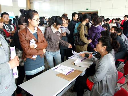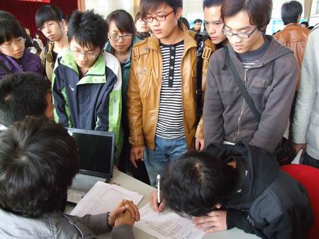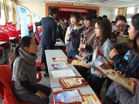 10月29日下午,學校報告廳內人頭攢動,這里正在舉行2009年校園招聘會。為了促進大學生積極就業(yè),拓寬畢業(yè)生就業(yè)渠道,為同學們搭建就業(yè)平臺,校就業(yè)指導服務中心通過多方聯(lián)系與溝通,把十余家用人單位請到學校來,選擇他們所需要的畢業(yè)生。前來招聘的用人單位和近千名應聘學生使初冬的校園變得熱鬧起來。