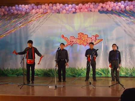 為了體現(xiàn)學(xué)校對(duì)教職工的關(guān)愛,文藝匯演過程中,學(xué)校領(lǐng)導(dǎo)還為寅虎年出生的同志頒發(fā)了紀(jì)念品,為12月29日過生日的同志送上了生日蛋糕。學(xué)校和領(lǐng)導(dǎo)的關(guān)懷讓這些同志倍感溫暖和幸福。為了活躍現(xiàn)場(chǎng)氣氛,演出過程中還多次進(jìn)行了抽獎(jiǎng)活動(dòng)。所有被抽中的幸運(yùn)者和沒被抽中的同志們其實(shí)在乎的并不是手中的獎(jiǎng)品,而是能在阜新高專這個(gè)大家庭里快樂的生活和工作。
