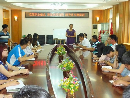 為提高學(xué)工隊(duì)伍心理健康教育專(zhuān)業(yè)素質(zhì),推進(jìn)我校心理健康教育工作進(jìn)一步開(kāi)展,6月19日,學(xué)生處舉辦了第四期輔導(dǎo)員心理健康培訓(xùn)講座,會(huì)議由學(xué)生處處長(zhǎng)畢燁明主持,心理健康教育與咨詢(xún)服務(wù)中心主任郭淑芬老師主講,學(xué)生處副處長(zhǎng)姜會(huì)學(xué)、姚雷,全體輔導(dǎo)員及相關(guān)公寓管理人員參加了培訓(xùn)。 本次培訓(xùn)講座,郭淑芬老師主要從自我成長(zhǎng)、職業(yè)倦怠的原因及應(yīng)對(duì)、工作的三種境界、自我需要的層次、情緒管理技巧與如何提高幸福感等六個(gè)方面,采取游戲互動(dòng)、實(shí)例講解、心理分析、角色轉(zhuǎn)換等方式,結(jié)合學(xué)校具體情況,進(jìn)行了深入淺出的講解,激勵(lì)輔導(dǎo)員提高自我業(yè)務(wù)能力、學(xué)會(huì)時(shí)間管理、協(xié)調(diào)人際關(guān)系、建立社會(huì)支持系統(tǒng),克服職業(yè)倦怠,提高幸福指數(shù),以更好的心態(tài)投入到工作中。