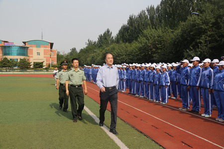 校黨委書記張明文和部隊(duì)首長檢閱受訓(xùn)新生