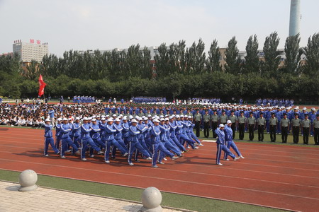 大會在莊嚴(yán)的國歌聲中拉開帷幕,學(xué)校黨委書記張明文在65667部隊(duì)首長鄒文強(qiáng)陪同下檢閱了受訓(xùn)隊(duì)伍,頓時(shí)高亢嘹亮的聲音“首長好”、“為人民服務(wù)”響徹高專校園上空。檢閱完畢后,新生受訓(xùn)方隊(duì)開始了分列式表演。伴隨著嘹亮、激昂的《義勇軍進(jìn)行曲》,同學(xué)們穿著整齊的服裝、邁著矯健的步伐依次走過主席臺。只見他們精神飽滿、氣宇軒昂、口號嘹亮,眼神中流露出一股堅(jiān)定。短暫的十天軍訓(xùn),他們臉曬黑了、腳走出了血泡,但同學(xué)們不叫苦、不怕累,經(jīng)過軍訓(xùn)洗禮的他們有如即將踏上戰(zhàn)場的戰(zhàn)士,剛毅堅(jiān)強(qiáng)、豪情萬丈,充滿了干勁。接下來,副校長王立槐公布軍訓(xùn)優(yōu)秀連隊(duì)、入學(xué)教育先進(jìn)班級,獲獎集體代表上臺領(lǐng)獎。頒獎過后,學(xué)校領(lǐng)導(dǎo)向承訓(xùn)部隊(duì)贈送錦旗,感謝65667部隊(duì)的所有教官付出的辛苦與汗水,鮮紅的絨布,燙金的文字,代表著軍民情如魚水,友誼天長地久,也祝愿高專與65667部隊(duì)都能夠紅紅火火,金輝熠熠。之后,財(cái)經(jīng)系黨支部書記、教授趙玲代表教師發(fā)言,歡迎來自全國各地的新同學(xué)加入阜新高專這個大集體,并告訴同學(xué)們在大學(xué)一定要規(guī)劃好自己的職業(yè)生涯,不要浪費(fèi)三年的大好時(shí)光;人文系12級導(dǎo)游專業(yè)顏旭隆、師范部14級學(xué)前教育專業(yè)夏梁靚分別代表老生和新生發(fā)言,顏旭隆鼓勵學(xué)弟學(xué)妹們,刻苦學(xué)習(xí),勤于磨練,在色彩斑斕的大學(xué)校園里施展才華,鍛煉能力,他祝愿新同學(xué)能夠贏得成功,前程似錦;夏梁靚深情地表達(dá)了對高專的一見鐘情和對未來大學(xué)生活的憧憬,對領(lǐng)導(dǎo)老師的關(guān)懷和學(xué)哥學(xué)姐的熱情幫助致以衷心的感謝和崇高的敬意,表示絕不辜負(fù)學(xué)校、老師和家長的重托,刻苦學(xué)習(xí),成為祖國明日之星。