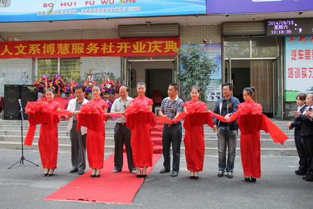 當鞭炮聲響徹全場時,副校長李慶恒、教務處副處長陳振斌、人文系主任王新和博慧服務社經(jīng)理崔運弘手拿剪刀,為博慧服務社剪彩。儀式后,各位領導進入博慧服務社參觀,邊看邊點頭,連連稱好。