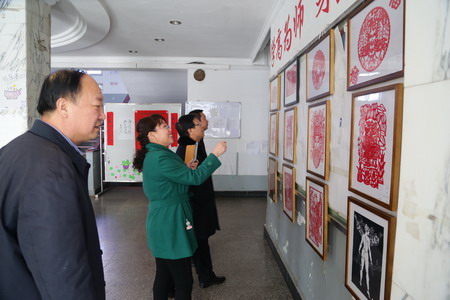 剪紙是中國的民間藝術(shù)?!耙患糁Z神功,美在民間永不朽”是郭沫若先生對這種藝術(shù)的由衷贊嘆。3月18日,由師范部美術(shù)教研組王春哲老師指導(dǎo)的13級高職學(xué)前專業(yè)學(xué)生的剪紙作品在兩個校區(qū)進行展覽。副校長李慶恒、教務(wù)處長魏彤光、督導(dǎo)辦主任寧瑩璋等與師范部領(lǐng)導(dǎo)一同觀看了作品展。