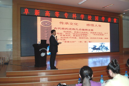 王新主任圍繞著“傳承文化、感悟人生”這一中心,從姓名現(xiàn)象的文化價(jià)值和國人的姓、氏、名、字、號(hào)兩個(gè)方面為同學(xué)們講解了“姓氏”篇章。王新主任說,文化的實(shí)質(zhì)是化人,或者說是人化。幾個(gè)簡單的姓名符號(hào),竟可以通古達(dá)今,體現(xiàn)世事變遷。在互動(dòng)環(huán)節(jié)中,農(nóng)牧系的一位同學(xué)道出了描寫秦檜和秦澗泉的對(duì)聯(lián),使講座的氣氛頓時(shí)高漲。當(dāng)王新主任講到為自己親戚的孩子起的名字“李言蹊”(取自:桃李不言,下自成蹊)的含義時(shí),博得了同學(xué)們的熱烈掌聲。姓、氏、名、字、號(hào)的講解,使同學(xué)們對(duì)姓名有了更深刻的理解。通過一個(gè)個(gè)或流芳千古或遺臭萬年的名字,同學(xué)們懂得了一個(gè)人的名字不僅屬于自己,也屬于家族,更屬于民族和國家,歷史責(zé)任感和使命感油然而生。體驗(yàn)創(chuàng)業(yè)艱辛 收獲成功喜悅。