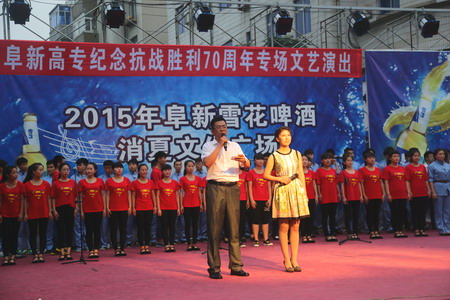 為紀念抗日戰(zhàn)爭勝利70周年,6月26日下午6點30分,我校赴解放廣場,進行了“阜新高專紀念抗戰(zhàn)勝利70周年專場文藝演出”。