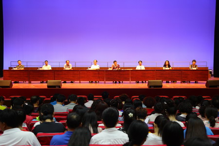9月4日上午9點(diǎn),我校在北校區(qū)報(bào)告廳召開了2015—2016學(xué)年度第一學(xué)期教職工大會(huì)。黨委書記張明文,校長趙瑞江,副校長李慶恒、王立槐、王立宏,黨委副書記呂東春,紀(jì)委書記劉振宇,工會(huì)主席范玉珍和600余名教職工參加了會(huì)議。大會(huì)由黨委書記張明文主持。