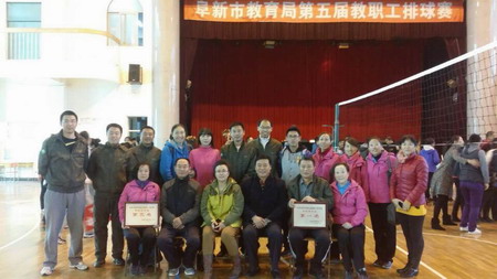 10月22日至10月24日,市教育局直屬單位第五屆排球賽在市高中舉行,我校代表隊(duì)參加了男子甲組、女子甲組的比賽,男隊(duì)再次奪金,女隊(duì)取得第三名的好成績。