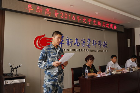 2016年9月7日下午,阜新高專2016年應(yīng)征入伍同學(xué)歡送會在公建系三樓會議舉行。主管學(xué)生工作的副校長、學(xué)校武裝部部長王立宏,校就業(yè)指導(dǎo)服務(wù)中心主任兼武裝部副部長寶艷紅、團(tuán)委書記兼武裝部副部長佟欣、各系部書記和輔導(dǎo)員、學(xué)校武裝部干事以及28名新入伍大學(xué)生參加了會議。會議由寶艷紅副部長主持。