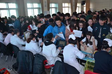 此次活動(dòng)在充足的前期準(zhǔn)備和各相關(guān)部門(mén)的幫助下順利的進(jìn)行,活動(dòng)剛開(kāi)始,就有三百余名學(xué)生前來(lái)報(bào)名,后來(lái)陸續(xù)有同學(xué)前來(lái)參加,自愿為社會(huì)奉獻(xiàn)出自己的一份愛(ài)心。填表、化驗(yàn)、登記、采血樣、抽血,所有的流程都在阜新中心血站的工作人員的協(xié)調(diào)下有條不紊的進(jìn)行著。其中我校有五名老師也參與在其中,為無(wú)償獻(xiàn)血活動(dòng)貢獻(xiàn)自己的一份力量。