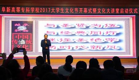 校企合作辦主任王希安副教授以阜新高專文化大講堂為平臺(tái)來(lái)講授中國(guó)傳統(tǒng)文化,講解一些漢字的形體演變、 造字方法、字形字義的歷史、從本意到字義的延伸。并以“孝”字和“容”字為例,“孝”字是感恩教育,“容”字和諧教育,告訴同學(xué)們要孝老,友愛(ài),與人和諧相處。