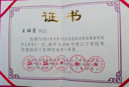 近日,省委宣傳部、省國(guó)資委、省總工會(huì)、省思想政治工作研究會(huì)聯(lián)合下發(fā)了《關(guān)于表彰2016年度遼寧省思想政治工作研究先進(jìn)集體和個(gè)人的決定》,對(duì)促進(jìn)我省科學(xué)發(fā)展、和諧發(fā)展做出重要貢獻(xiàn)的一批思想政治工作研究的先進(jìn)集體和個(gè)人予以表彰。我校思想政治工作研究會(huì)被授予“思想政治工作研究先進(jìn)集體”榮譽(yù)稱號(hào)。本次評(píng)選活動(dòng)還征集到七十余項(xiàng)優(yōu)秀成果,我校教師王麗霞的論文《新形勢(shì)下高校思想政治理論課教師的職業(yè)素養(yǎng)》脫穎而出,榮獲一等獎(jiǎng)。
