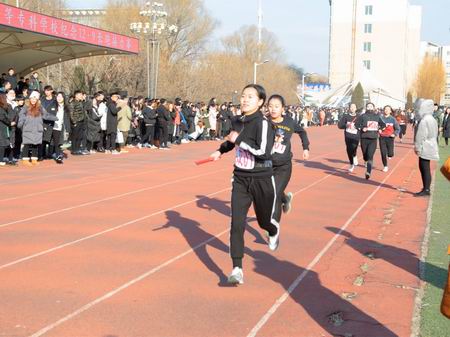 運(yùn)動(dòng)員們沖出起跑線,奮勇?tīng)?zhēng)先。在比賽過(guò)程中盡管有的同學(xué)體力不支,但還是堅(jiān)持跑完全程。各系部的同學(xué)為運(yùn)動(dòng)員吶喊助威,整個(gè)操場(chǎng)熱鬧非凡。經(jīng)過(guò)一個(gè)多小時(shí)的比拼,比賽圓滿結(jié)束。