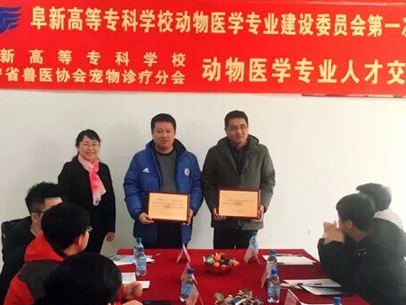 本次會議聘請遼寧省畜牧獸醫(yī)局尚學(xué)東同志、遼寧省獸醫(yī)協(xié)會寵物診療分會副會長張宏光同志為我校動物醫(yī)學(xué)專業(yè)建設(shè)委員會副主任;聘請阜新市畜牧獸醫(yī)局李鐵剛同志為動物醫(yī)學(xué)專業(yè)建設(shè)委員會顧問;聘請王晨(沈陽忠愛聯(lián)盟動物醫(yī)院有限公司技術(shù)院長)、關(guān)宇辰(沈陽欣北環(huán)動物醫(yī)院院長)、朱慶峰(沈陽米米貓醫(yī)院院長)為動物醫(yī)學(xué)專業(yè)(寵物診療方向)建設(shè)委員會成員。對承擔(dān)我校學(xué)生實習(xí)就業(yè)工作的沈陽忠愛聯(lián)盟動物醫(yī)院、沈陽欣北環(huán)動物醫(yī)院、沈陽東清連鎖動物醫(yī)院、鞍山宏光動物醫(yī)院、遼陽豐泰動物醫(yī)院、撫順博愛連鎖動物醫(yī)院、營口市中心動物醫(yī)院、大連乖寶寶連鎖動物醫(yī)院八家合作企業(yè)授予“阜新高等??茖W(xué)校動物醫(yī)學(xué)專業(yè)實習(xí)就業(yè)基地”牌匾。
