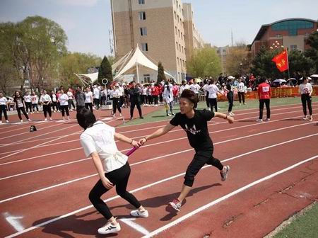 校長趙瑞江宣布我校第二十一屆田徑運動會正式開始。伴著師生共同的期待,飽滿的激情,7點30分,運動會開幕式準(zhǔn)時開始。在雄壯激昂的樂曲聲中,國旗隊、校旗隊、彩旗隊、花束隊、彩球隊、裁判員隊伍和各系代表隊依次經(jīng)過主席臺接受大會的檢閱。整齊的步伐,矯健的身姿展現(xiàn)了我?!靶薜碌Z能”的校訓(xùn)精神。體現(xiàn)了高專學(xué)生良好的精神風(fēng)貌和銳意進(jìn)取的拼搏精.