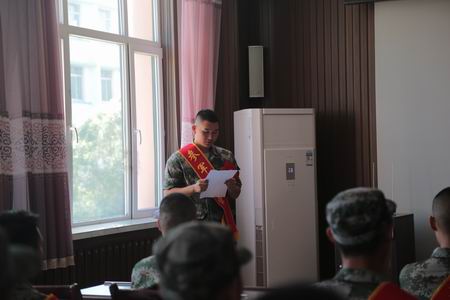 新兵代表賈齊賓在歡送會(huì)上發(fā)言