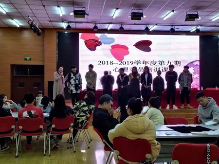 為更好地幫助18級(jí)心理委員開展好班級(jí)心理健康宣傳工作,我校于3月12日在公建系多功能廳舉行了2018—2019學(xué)年度第九期心理委員培訓(xùn)課。本次培訓(xùn)由我校心理咨詢中心的郭淑芬老師主講,校心理健康部的全體成員及各班心理委員參加了培訓(xùn)。