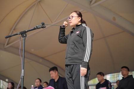 裁判員代表體育教學(xué)部教師包麗英代表全體裁判員宣誓