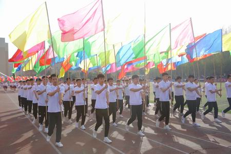 檢閱儀式后舉行了隆重的升旗儀式,鮮紅的五星紅旗伴著雄壯的國歌冉冉升起。威嚴(yán)的升旗過后,副校長魏彤光致開幕詞,她首先代表學(xué)校領(lǐng)導(dǎo)班子,向精心籌劃本屆運(yùn)動會的工作人員、教練員們表達(dá)最誠懇的謝意,對全體運(yùn)動員裁判員致以親切的問候和衷心的祝愿,祝愿學(xué)子陶醉青春的夢想,擁抱青春的才華,做一名德智體全面發(fā)展的好青年,并預(yù)祝運(yùn)動會圓滿成功,隨后體育教學(xué)部教師包麗英代表全體裁判員莊嚴(yán)宣誓,承諾必將嚴(yán)格遵守時(shí)間和比賽規(guī)則,本著公平公正公開的原則,履行裁判員的職責(zé)。綜職系學(xué)生薛冬酩代表運(yùn)動員承諾,要遵守比賽規(guī)則,團(tuán)結(jié)協(xié)作,公平競爭,賽出風(fēng)格。
