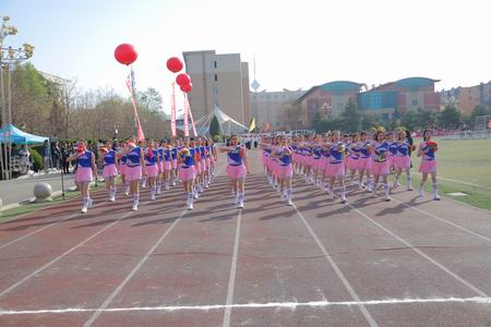 春回大地,惠風(fēng)和暢。4月27日上午,阜新高等??茖W(xué)校第二十二屆田徑運(yùn)動會正式拉開了帷幕。校長呂東春,副校長王立槐、王立宏,紀(jì)委書記劉振宇,副校長魏彤光和全校5000余名師生共同參加了此次運(yùn)動會。校長呂東春宣布我校第二十二屆田徑運(yùn)動會正式開始。伴著師生共同的期待,飽滿的激情,7點(diǎn)30分,運(yùn)動會開幕式準(zhǔn)時(shí)開始。在雄壯激昂的樂曲聲中,國旗隊(duì)、校旗隊(duì)、彩旗隊(duì)、花束隊(duì)、彩球隊(duì)、裁判員隊(duì)伍和各系代表隊(duì)依次經(jīng)過主席臺接受大會的檢閱。整齊的步伐,矯健的身姿展現(xiàn)了我?!靶薜碌Z能”的校訓(xùn)精神。體現(xiàn)了高專學(xué)生良好的精神風(fēng)貌和銳意進(jìn)取的拼搏精.