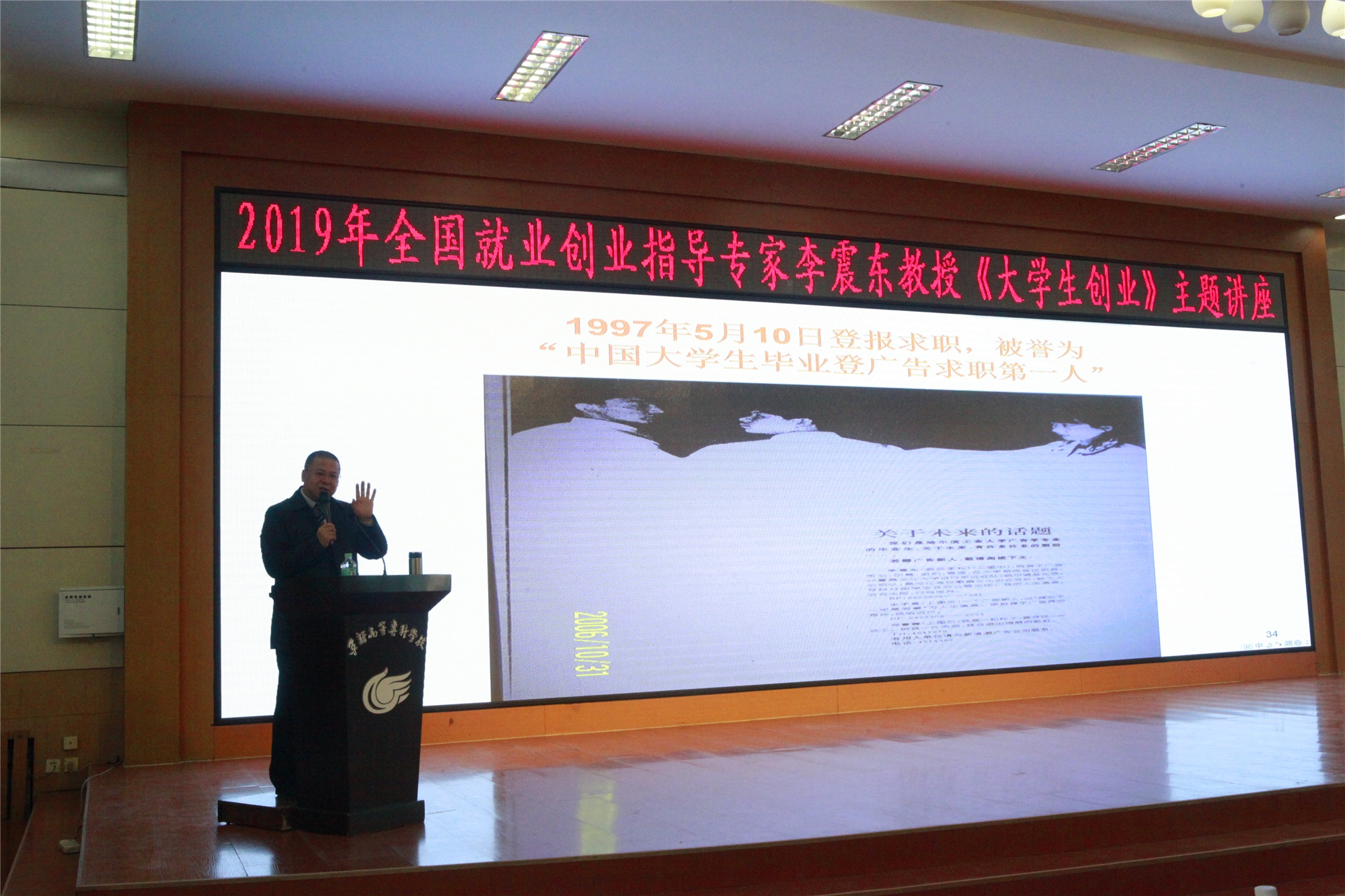 12月4日下午,全國就業(yè)創(chuàng)業(yè)指導專家、伯馬創(chuàng)業(yè)研究院院長李震東教授來到我校做《創(chuàng)業(yè)改變命運,創(chuàng)新成就未來》專題講座。此次活動由阜新市創(chuàng)業(yè)大學主辦,我校承辦,來自遼寧省人力資源和社會保障廳、阜新市人力資源和社會保障局、共青團阜新市委員會、遼寧工程技術(shù)大學、遼寧民族高等師范??茖W校等領(lǐng)導及我校領(lǐng)導和部分師生聆聽了這場專題講座。