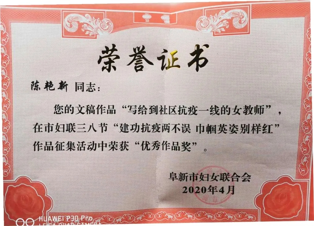 日前,由阜新市婦女聯(lián)合會(huì)主辦的“建功抗疫兩不誤 巾幗英姿別樣紅”三八節(jié)網(wǎng)上過(guò)節(jié)有獎(jiǎng)?wù)骷顒?dòng)圓滿落下帷幕。此次有獎(jiǎng)?wù)骷顒?dòng)分為文稿、書(shū)畫(huà)、攝影、微視頻四個(gè)板塊,征集到的作品題材豐富,內(nèi)容積極向上,充分的展示了我市婦女姐妹在家庭生活中的獨(dú)特作用,在轉(zhuǎn)型振興中的巾幗風(fēng)采,及對(duì)此次抗疫行動(dòng)的美好祝愿。我校外語(yǔ)系教師陳艷新創(chuàng)作的組詩(shī)《寫(xiě)給到社區(qū)抗議一線的女教師》榮獲“優(yōu)秀作品獎(jiǎng)”。