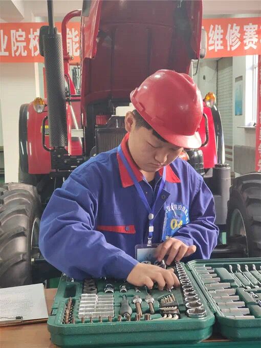 農(nóng)機(jī)維修賽項(xiàng)為個人賽,包括大型輪式拖拉機(jī)綜合故障診斷與排除、履帶自走式全喂入聯(lián)合收割機(jī)綜合故障診斷與排除兩個項(xiàng)目的競賽。比賽現(xiàn)場,參賽選手們爭分奪秒、操作嫻熟,展現(xiàn)了專業(yè)能力和職業(yè)素養(yǎng)。