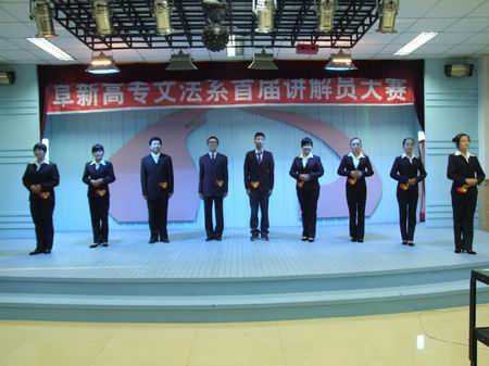 經(jīng)過幾輪激烈的角逐,最后08導(dǎo)游班劉丹同學(xué)摘得大賽桂冠,王鐵錚,史俊盈,梅林等同學(xué)分獲二、三等獎。教務(wù)處副處長王希安在總結(jié)發(fā)言時對本次大賽給予了充分肯定,他希望同學(xué)們不斷豐富自己的專業(yè)知識,提高自己的專業(yè)技能,為就業(yè)打下堅實的基礎(chǔ)。