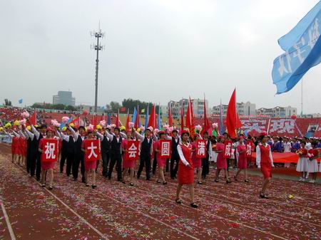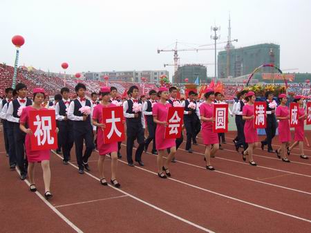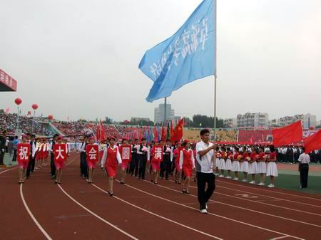 9月3日,阜新市第七屆運動會在市體育場隆重開幕。由我校59名禮儀隊員組成的方隊參加了開幕式。經過幾天的訓練,身著靚麗的服裝,揮舞著花束,步伐整齊的禮儀隊員們氣宇軒昂地經過主席臺,展示了高專學子良好的精神面貌和時代風采,給全場觀眾留下了深刻的印象。