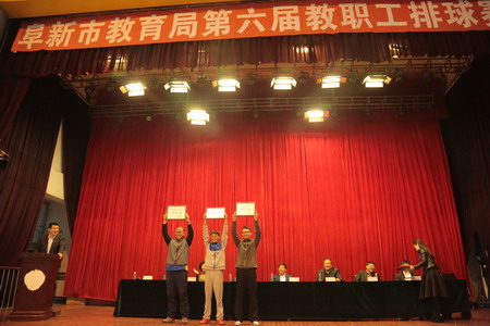 10月14至16號,市教育局工會在市高中舉辦了第六屆教職工排球賽,我校工會主席范玉珍率領(lǐng)代表隊參加了男子甲組和女子甲組的比賽。經(jīng)過頑強(qiáng)拼搏,我校代表隊榮獲男子甲組冠軍,也是六連冠,女子奪得甲組第四名。