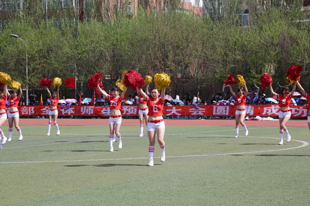 精彩的表演,潑灑著所有表演者辛勤的汗水,不畏艱辛,不怕困難,在表演中每一個動作都沒有絲毫的怠慢。正是她們?nèi)諒?fù)一日,克服困難,團結(jié)一心,互相合作,才有今天這優(yōu)美的表演。在運動會上煥發(fā)出了光彩,成為運動會上一道靚麗的風(fēng)景線。