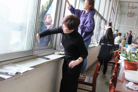 活動(dòng)伊始,馬寧老師簡單說明了本次活動(dòng)的流程和意義,并對學(xué)雷鋒志愿服務(wù)隊(duì)進(jìn)行了分組。隨后在圖書館老師的指引下同學(xué)們各自按照分配的任務(wù)進(jìn)行打掃。清掃范圍包括圖書館一樓和二樓的圖書閱覽區(qū)和借閱區(qū),在這次活動(dòng)中,同學(xué)們熱情高昂、不怕臟、不怕累,分工明細(xì),配合默契,將每一個(gè)角落都做了一次徹底的整理、打掃、擦拭,不放過任何死角。同學(xué)們通過擦樓梯扶手、桌椅板凳、玻璃、圖書展架、沖洗地板等義務(wù)行動(dòng)弘揚(yáng)了雷鋒服務(wù)人民、助人為樂的奉獻(xiàn)精神,贏得圖書館老師的高度贊賞。