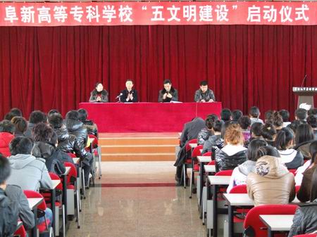 3月15日下午,由學(xué)生處舉辦的阜新高專“五文明”建設(shè)活動(dòng)啟動(dòng)儀式在我校報(bào)告廳隆重舉行。學(xué)生處處長于偉東,副處長王國成、石光、姜會(huì)學(xué),各系部輔導(dǎo)員及各班學(xué)生代表共500余人參加了啟動(dòng)儀式,大會(huì)由王國成主持。