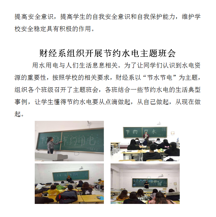 財經(jīng)系安全教育、節(jié)水節(jié)電、愛護(hù)環(huán)境班會總結(jié)