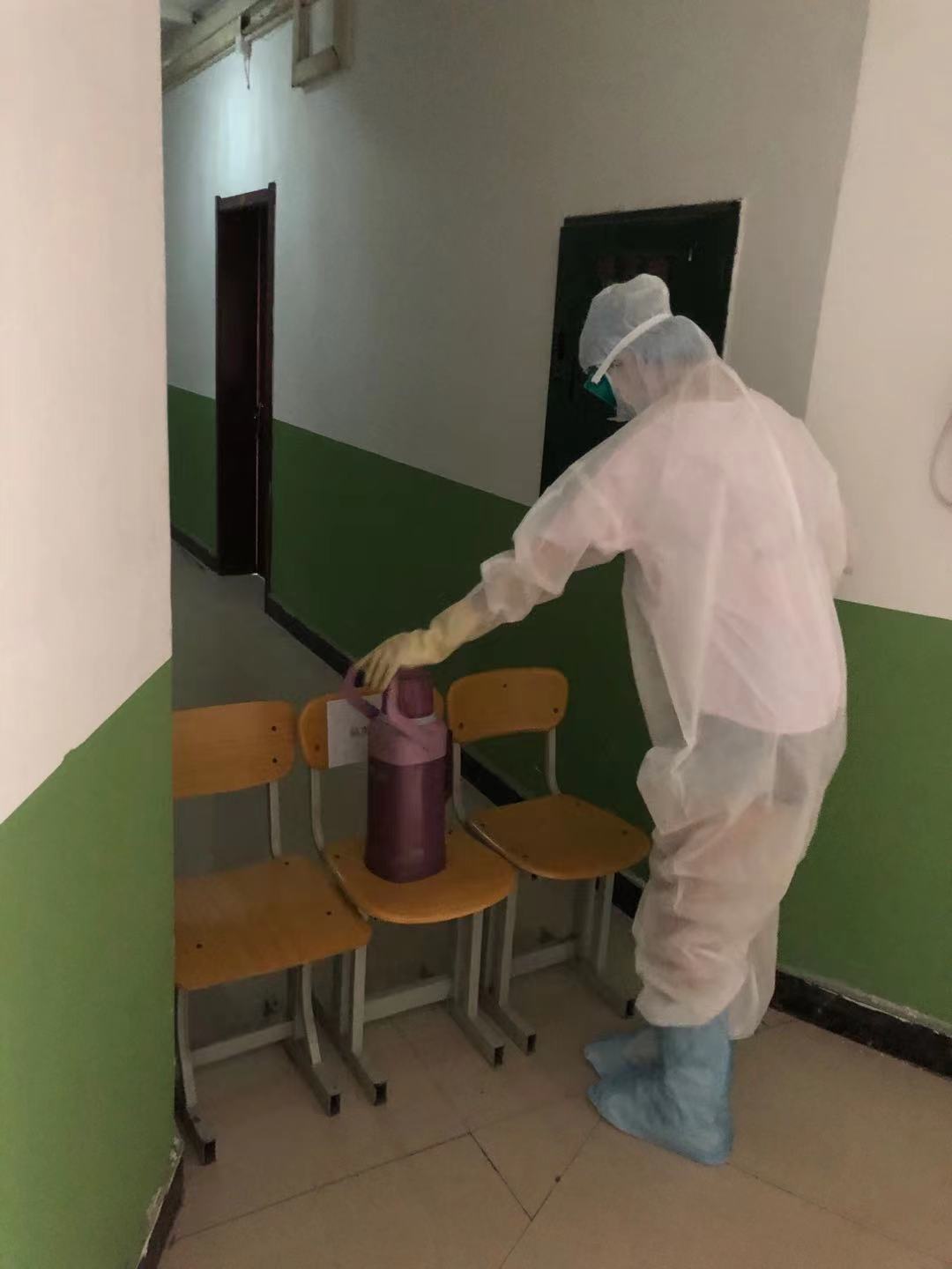 公寓管理中心嚴格按照要求,采取單人單寢室方式進行隔離并每日進行三次體溫測量記錄。期間公寓老師24小時值守,隨時為隔離學(xué)生提供幫助。根據(jù)隔離情況安排志愿者在保證自身安全防護的同時為隔離學(xué)生提供基礎(chǔ)生活保障,隔離期間在走廊隔離處取餐等生活用品,實現(xiàn)零接觸,且每日對隔離寢室樓層公共區(qū)域用1:100的84消毒液進行消毒,確保樓內(nèi)全體學(xué)生安全。