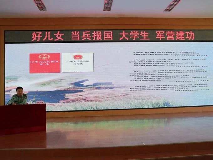 6月10日下午,“好兒女當(dāng)兵報(bào)國 大學(xué)生軍營建功”主題宣講會(huì)在尚學(xué)樓五樓報(bào)告廳舉行。宣講會(huì)特邀阜新市軍區(qū)動(dòng)員處處長席大星上校主講,學(xué)校黨委副書記劉振宇,學(xué)生處處長王國成,團(tuán)委副書記吳遲以及各系支部書記、輔導(dǎo)員、班主任、有意愿參軍的青年學(xué)生參加了此次會(huì)議。會(huì)議由黨委副書記劉振宇主持。