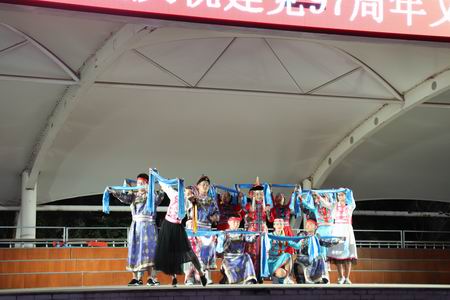 在校宣傳統(tǒng)戰(zhàn)部的精心策劃下,師范系、機(jī)關(guān)一支部、公建系等10個(gè)支部編排了12個(gè)精彩的節(jié)目,為在場(chǎng)觀眾獻(xiàn)上了一場(chǎng)精彩紛呈的視聽盛宴。師范系40余位同學(xué)身穿各式民族服裝演繹了大型舞蹈《愛我中華》,為本場(chǎng)演出開啟序幕;機(jī)關(guān)一支部用朗誦的方式致敬新時(shí)代,激勵(lì)新征程;綜職系小合唱《我愛你中國(guó)》、機(jī)械系白楊老師的獨(dú)唱《中國(guó)人》、農(nóng)牧系歌伴舞《厲害了 我的國(guó)》、師范部郭妍老師的獨(dú)唱《祖國(guó)之戀》, 深情又深沉地唱出對(duì)祖國(guó)的熱愛和身為一名中國(guó)人的驕傲;人文系帶來的舞蹈《芳華》,機(jī)械系和計(jì)信系聯(lián)袂組成的樂隊(duì)表演的歌曲《大學(xué)夢(mèng)》、《真的愛你》、《光輝歲月》,舞出青春風(fēng)采,唱出如歌韶華;財(cái)經(jīng)系舞蹈《又唱紅梅贊》表現(xiàn)了中華兒女千難萬(wàn)險(xiǎn)無所懼,披荊斬棘向前進(jìn)的豪邁氣概;蒙文系歌伴舞《美麗的草原我的家》,帶我們走進(jìn)了藍(lán)天如洗,綠野如茵的美麗草原;公建系的大合唱《中國(guó)軍魂》和《歌唱祖國(guó)》將晚會(huì)再一次推向高潮。同學(xué)們歌聲嘹亮、氣勢(shì)磅礴,展示了我校師生良好的精神風(fēng)貌,它們用最美的歌聲歌頌祖國(guó),歌頌人民軍隊(duì),歌唱黨領(lǐng)導(dǎo)的中國(guó)特色社會(huì)主義事業(yè)更加燦爛美好的明天。