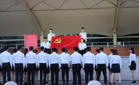 25名新黨員面向黨旗莊嚴(yán)宣誓