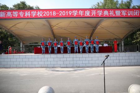 沙場點兵日,英姿勃發(fā)時。9月20日下午,我校隆重舉行 2018-2019學年度開學典禮暨新生軍訓閉營式。65651部隊少校陳璨,遼寧省蒙醫(yī)醫(yī)院院長阜蒙蒙醫(yī)研究所所長李小波、副院長副所長齊寶山,我校黨委副書記呂東春、副校長王立槐、王立宏、紀委書記劉振宇、工會主席范玉珍出席了儀式。各職能部門、各系領導、承訓部隊教官、教師代表、以及全體學生等參加儀式。儀式由副校長王立宏主持。、
