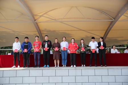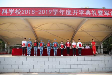 副校長王立槐公布軍訓優(yōu)秀連隊、入學教育先進班級。紀委書記劉振宇公布阜新高專2017-2018學年度校三好學生、優(yōu)秀學生干部、優(yōu)秀共青團干部和優(yōu)秀團員名單。校領導及部隊首長為先進集體、先進個人代表頒獎。