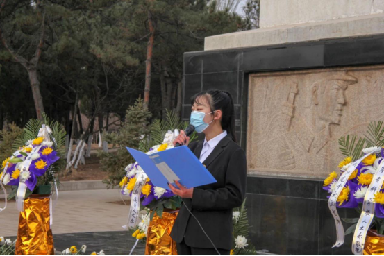 人文系導(dǎo)游專業(yè)商笑寒同學(xué)向在場師生講述了阜新解放的歷史,表達(dá)了當(dāng)代青年對先烈的哀思之情。人文系團(tuán)總支副書記馬英雙同學(xué)、愛心志愿者協(xié)會會長朱鴻偉同學(xué)分別作了發(fā)言。