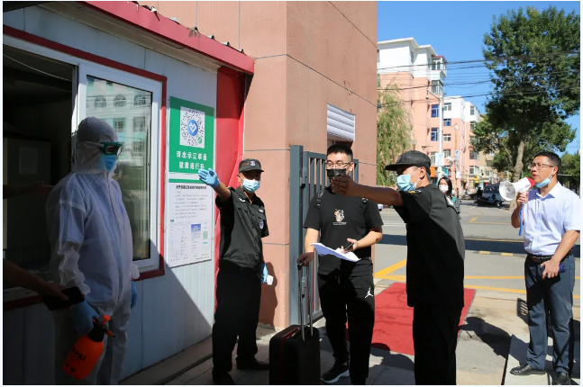 學生公寓已實施全面預防性消毒,學生完成校門報到流程,持體檢合格證,沿規(guī)定路線來到公寓報到處,在樓門外間隔1米等候。公寓負責人查驗 “遼事通健康通行碼”和“國務(wù)院客戶端防疫行程卡”、復測體溫、進行休整期管理和衛(wèi)生知識宣教,放行學生進入宿舍。