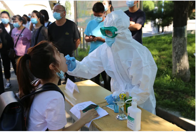 外省籍返校學生到達,在校門外警戒線外間隔1米站排等候,學校保安人員組織有序入校報道。報到場地設(shè)有消毒區(qū)、測溫區(qū)、復檢區(qū)、臨時隔離區(qū)、各系報到區(qū)和核酸復檢區(qū)每個工作區(qū)間隔5米以上,臨時隔離區(qū)周圍5米禁止人員接近。
