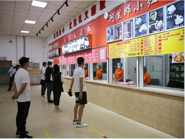 進食堂人員應配戴口罩,在門口進行體溫測量,發(fā)熱者禁止入內(nèi)。體溫正常者實施手消毒,然后按照單向通道,間隔一米到窗口取餐,即取即走,避免人員滯留,就餐時單人單向單桌,用餐后,工作人員進行環(huán)境消殺。