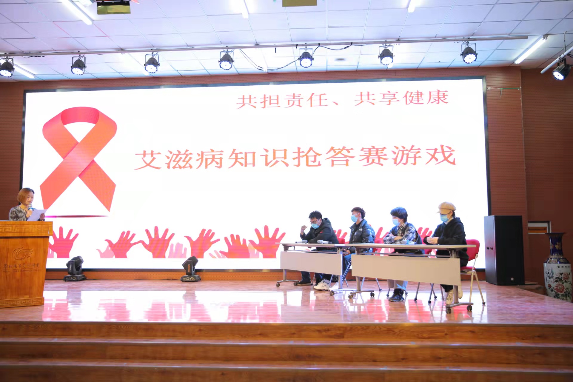 今年2020年12月1日是第33個“世界艾滋病日”,我國宣傳活動主題為“攜手防疫抗艾,共擔(dān)健康責(zé)任”。為宣傳和普及艾滋病預(yù)防知識,提高學(xué)生防控艾滋病能力,增強健康意識,12月1日下午,由校衛(wèi)生所、學(xué)生處、校團委聯(lián)合舉辦的“共擔(dān)責(zé)任、共享健康——青年大學(xué)生攜手抗艾行動”為主題的系列活動在礪能樓5樓報告廳舉行?;顒觾?nèi)容包括防艾志愿者簽名、防艾講座、現(xiàn)場問卷調(diào)查、有獎競猜等環(huán)節(jié)。